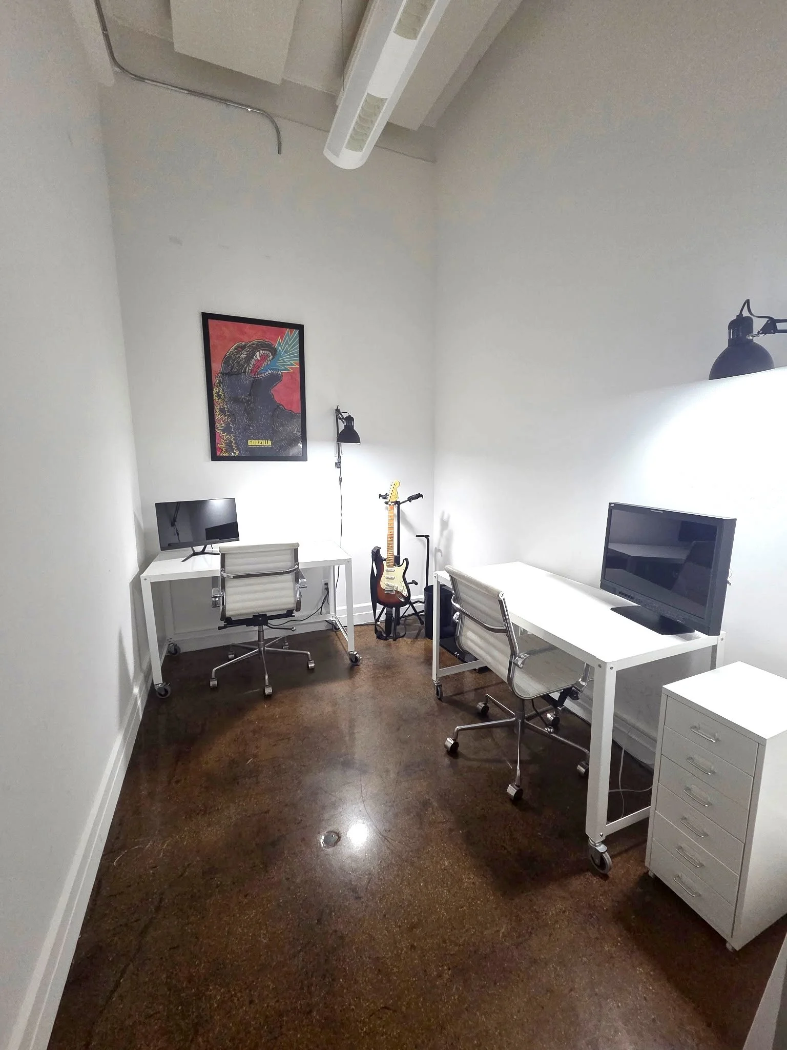 C+M offers a large private office (11’ x 7.5’) that is fully customizable, perfect for editors or a small team. There are multiple desks and chairs as well as second monitors upon request.